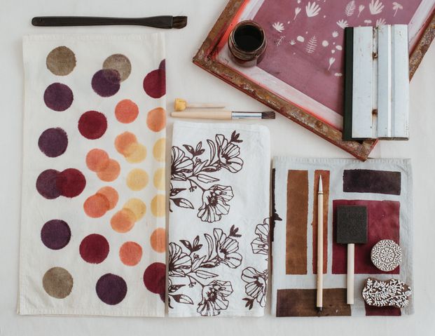 Abarcará técnicas de teñido, estampado, pintura, eco print acompañadas de procesos de investigación en casa técnica para profesionalizar tu trabajo y acompañar tu desarrollo.